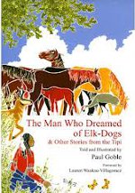 I’ve read a lot of Paul Goble books through the years, and to be honest, as much as I love the stories, it’s the pictures I love the most. The simplistic yet vibrant illustrations are stunning and very memorable. These are books that are truly ageless. I’ve seen kids too young to read page through them for an hour, completely absorbed in the pictures. Grade school age children simply enjoy the stories, and then older readers including adults can enjoy both of those, but also learn a great deal about the culture that created the tales. The Man Who Dreamed of Elk Dogs is no different in that regard.